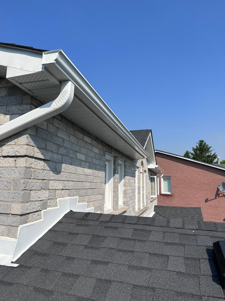 Elevate your home’s curb appeal and save on costly painting with our high-quality aluminum soffits, fascia, and eavestroughs.